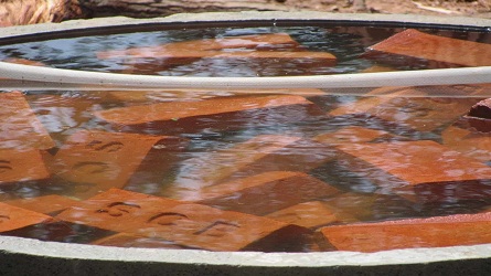 एकईंट में घुलनशीललवण की उपस्थितिजानने के लिए, इसे 24 घंटे केलिए पानी केस्नान में रखाऔर इसे छायामें सुखाया। सूखनेके बाद, ईंटकी सतह काअच्छी तरह सेनिरीक्षण करें। यदि कोईसफेद या ग्रेरंग जमा है, तो इसमें घुलनशीललवण होते हैंऔर निर्माण केलिए उपयोगी नहींहोते हैं।