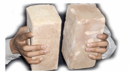 ईंटकी संरचना जाननेके लिए, समूहमें से एकईंट को यादृच्छिकरूप से चुनेंऔर उसे तोड़दें। ईंट केआंतरिक भाग कोस्पष्ट रूप सेदेखें। यह गांठऔर सजातीय सेमुक्त होना चाहिए।